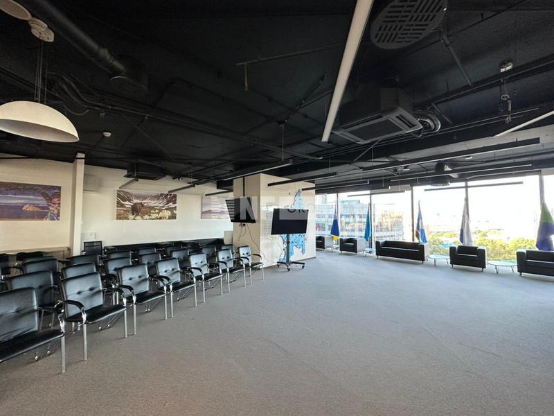 Помещение open space без отделки, потолки 3,55 м. Панорамное остекление.